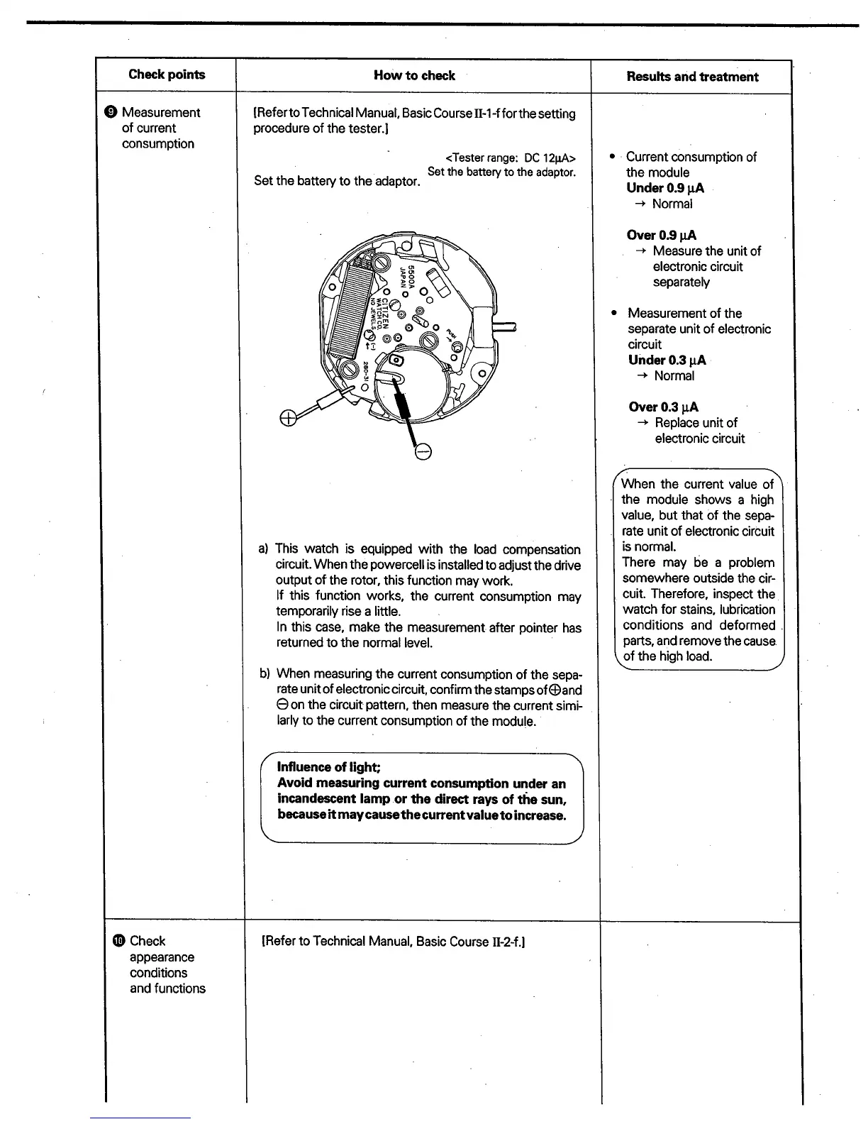 Citizen Quartz 5502 - Measurement of Current Consumption; Check Appearance and Functions
