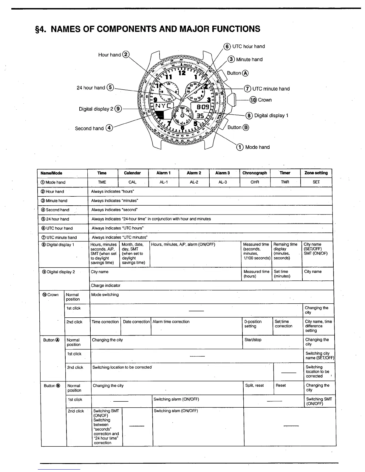 Citizen Quartz C650 - Names of Components and Major Functions