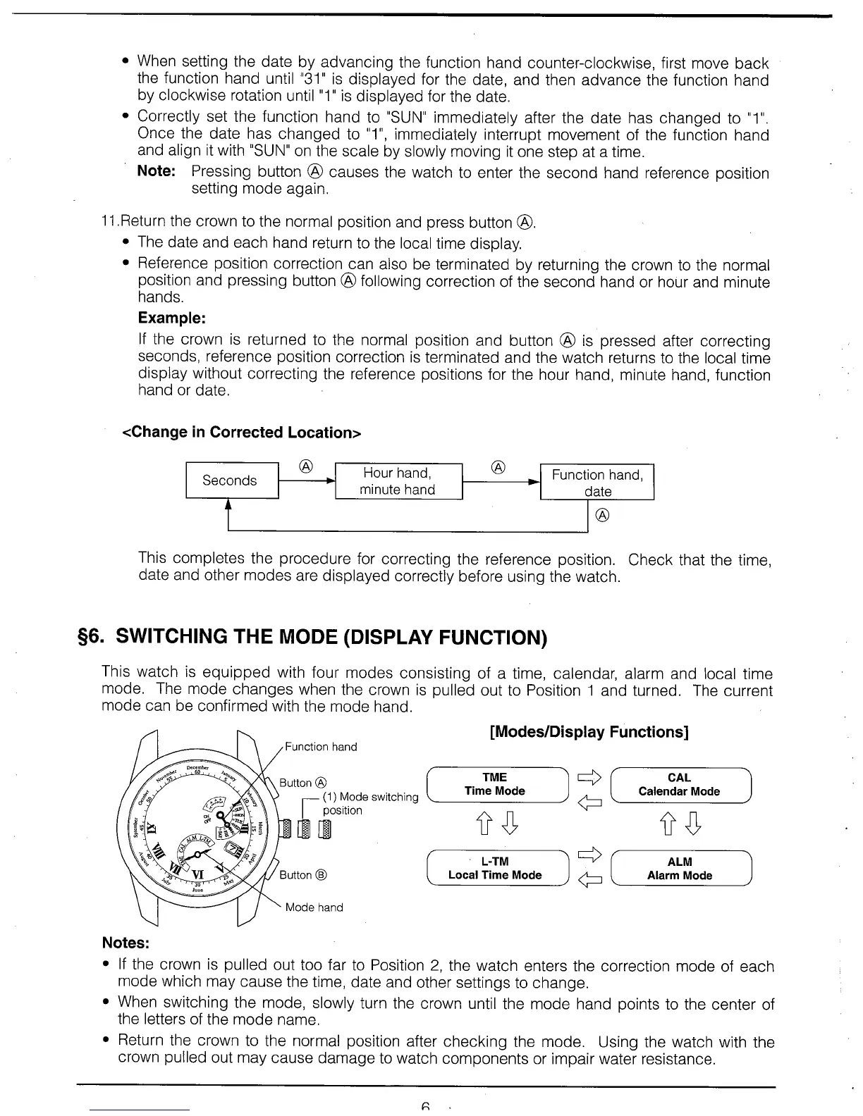 Citizen Quartz E870 - §6. SWITCHING THE MODE (DISPLAY FUNCTION)