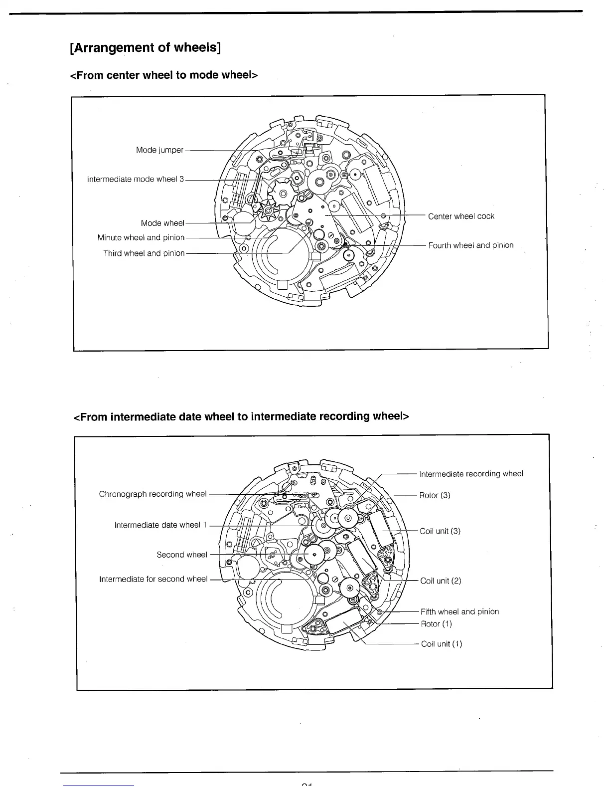 Citizen Quartz E870 - Arrangement of Wheels; From Center Wheel to Mode Wheel; From Intermediate Date Wheel to Intermediate Recording Wheel