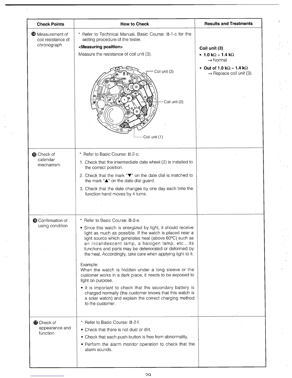 Citizen Quartz E870 - 14 Measurement of coil resistance of chronograph; 15 Check of calendar mechanism; 16 Confirmation of using condition; 17 Check of appearance and function