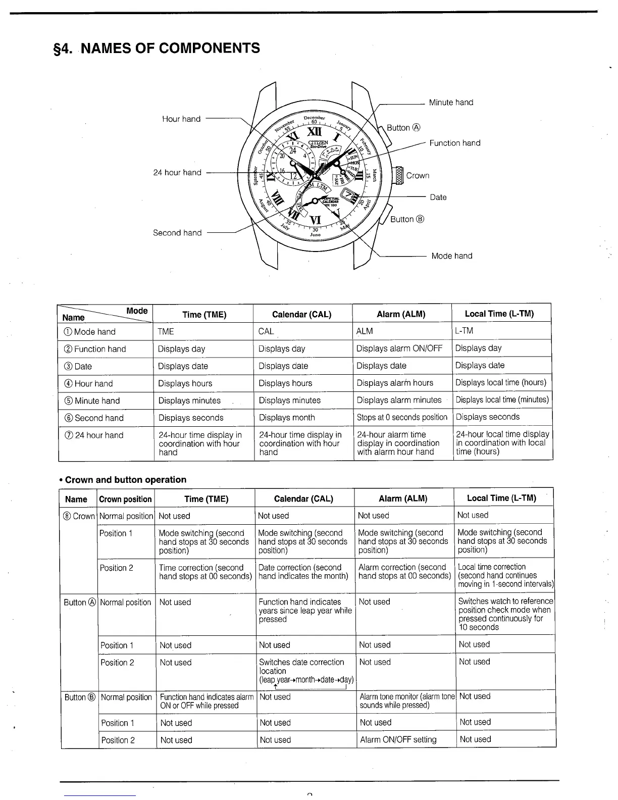 Citizen Quartz E870 - §4. NAMES OF COMPONENTS