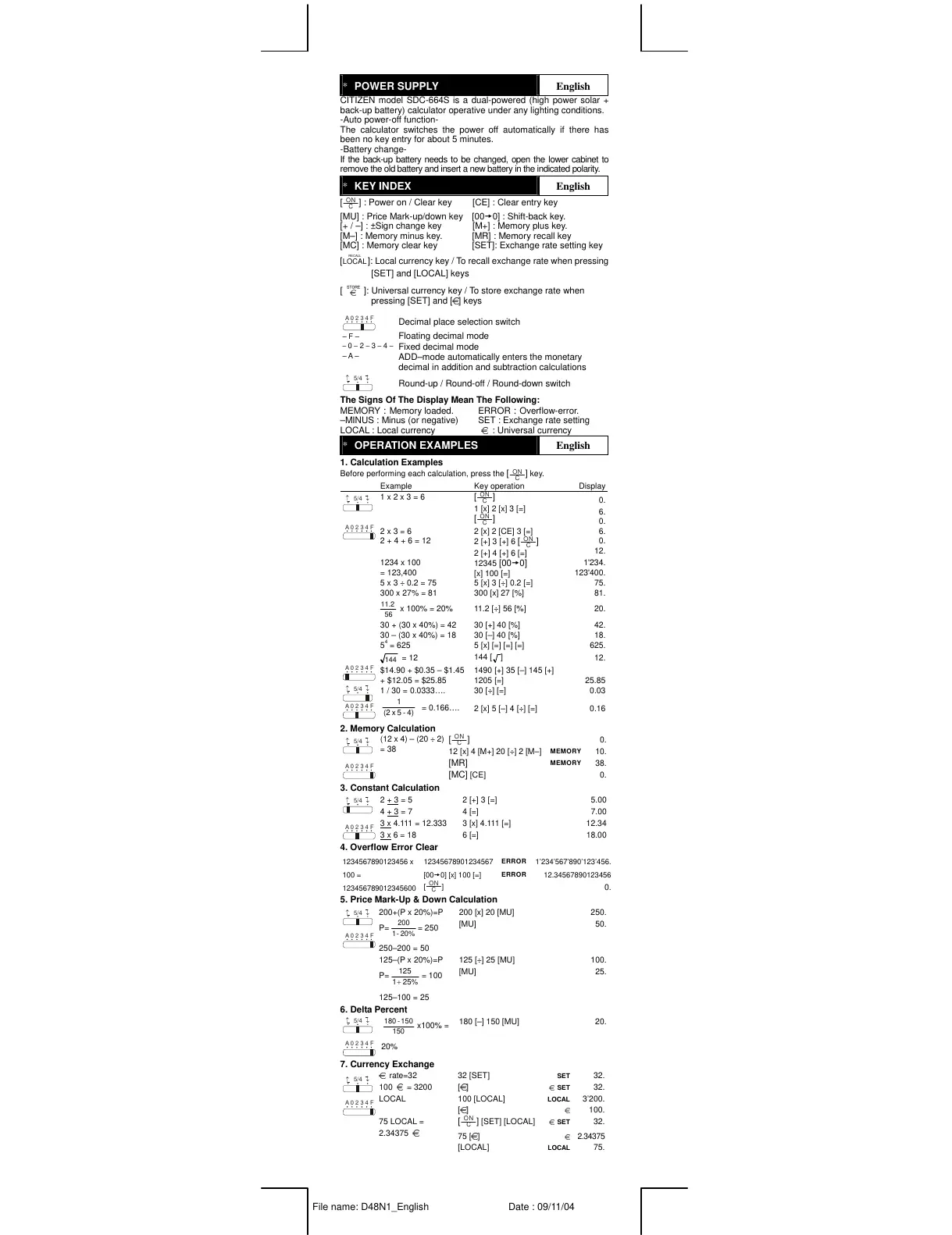 CITIZEN model SDC-664S is a dual-powered (high power solar +