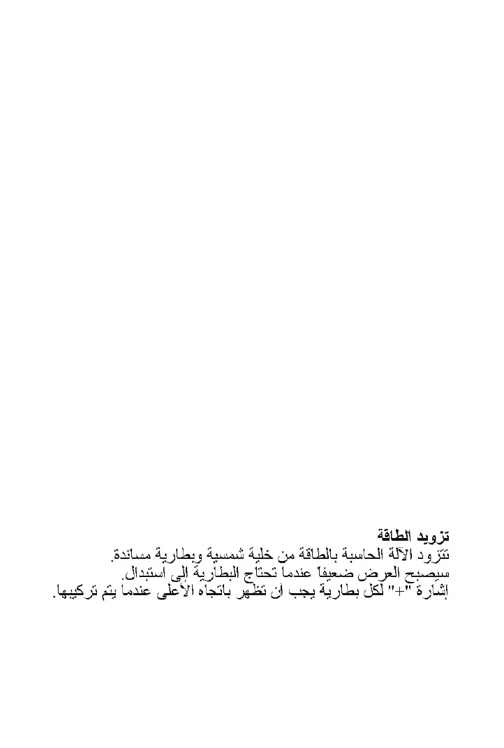 此計算機由太陽能電池與一般電池供應電力,當顯示漸微弱時,電池