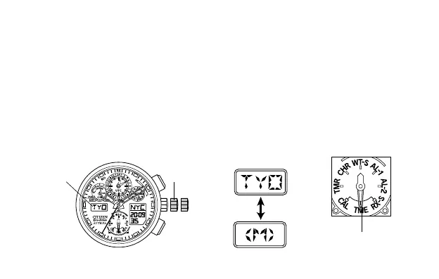 • The home city and (M) are displayed alternately on digital display 2 to show that the