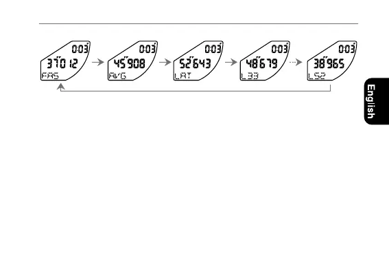 • “FAS” or “LAT” and the lap number are displayed alternately.