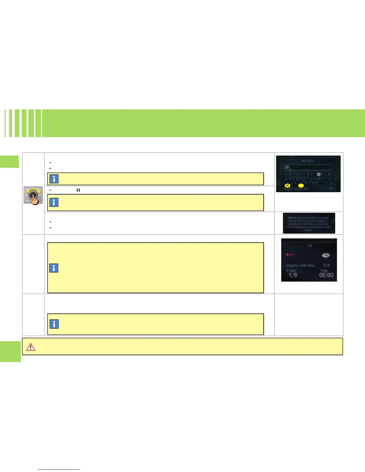 At any time, you can stop the copying of the CD/CD MP3 by accessing the Audio main