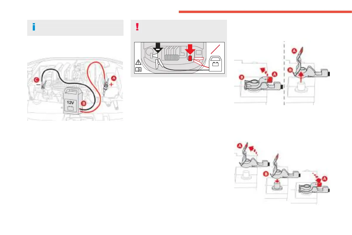 ► Ret open clamp B on the (+) terminal.