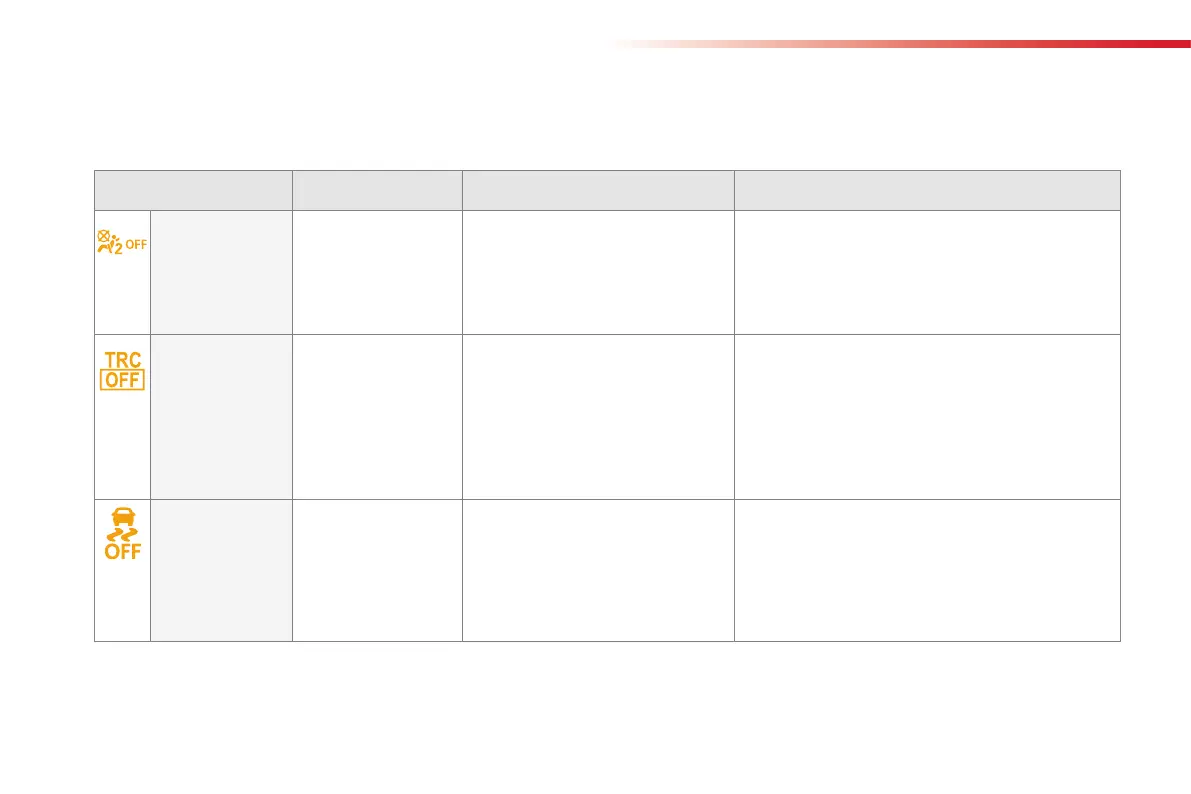 Ifoneofthefollowingindicatorlampscomeson,thisconfirmsthatthecorrespondingsystemhasbeenswitchedoffintentionally.