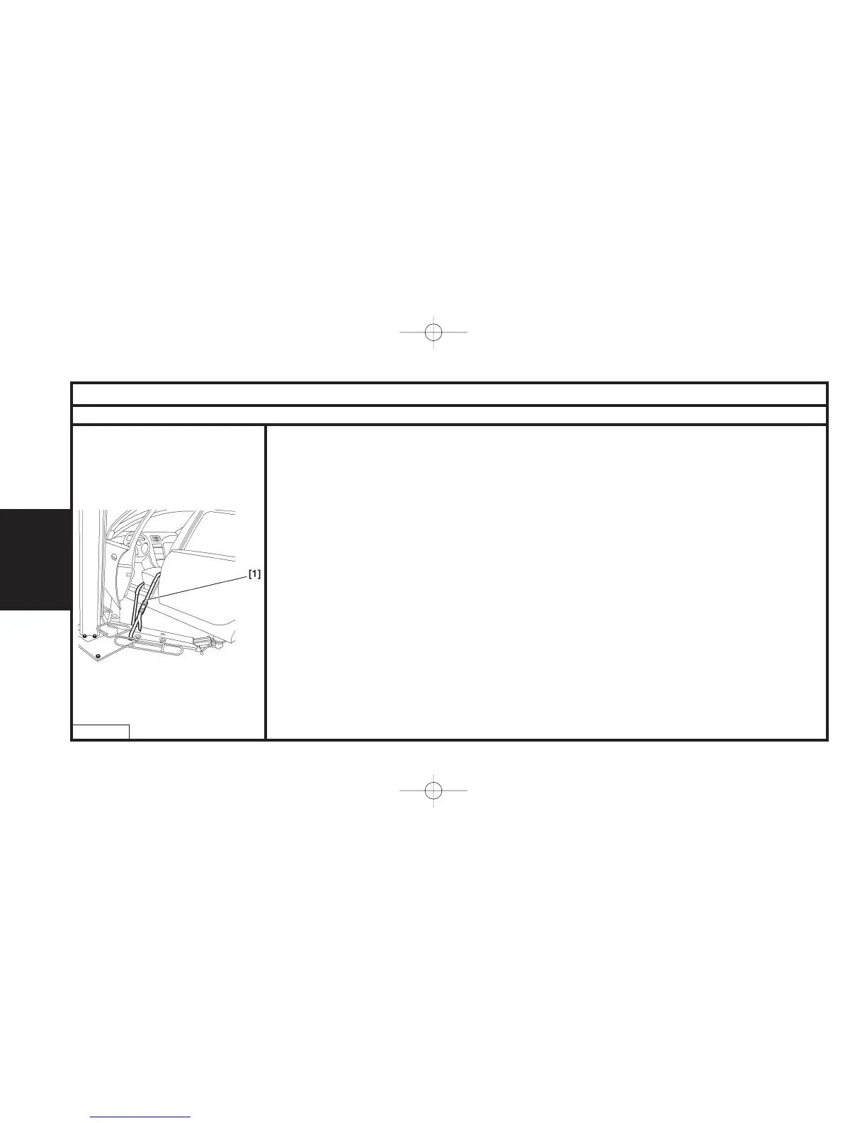 Place the safety straps [1] under the lift arm and criss-crossing the vehicle
