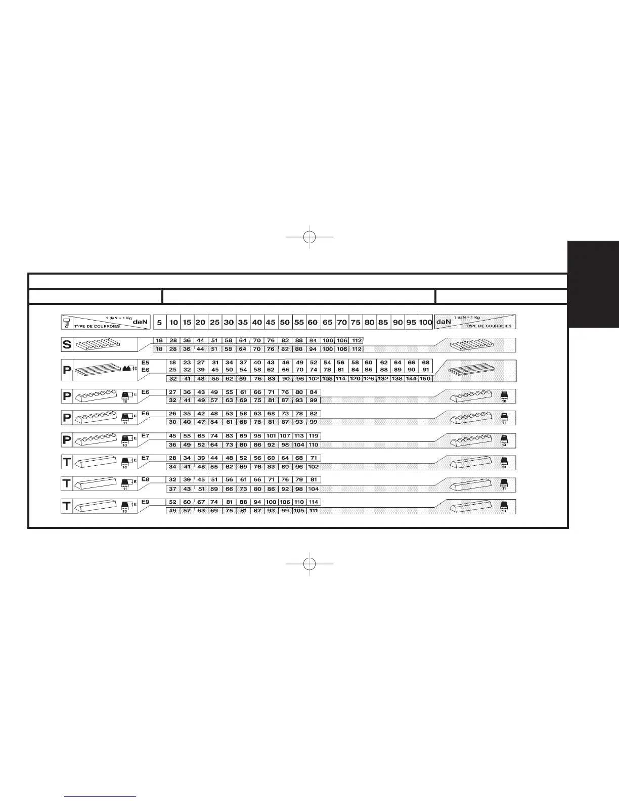 BELT TENSION/SEEM UNITS CORRESPONDENCE TABLE