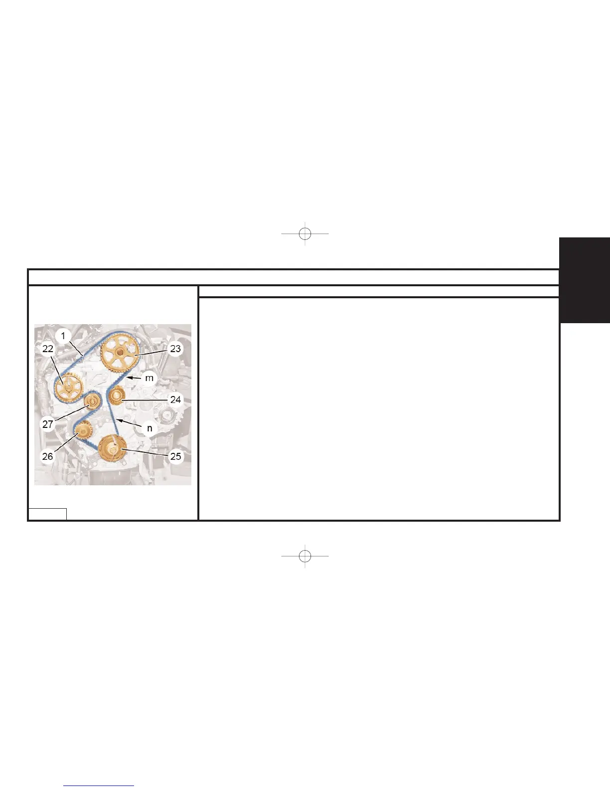 - Crankshaft pinion (25), guide roller (24), camshaft pinion (23), fuel high pressure pump pulley (22),