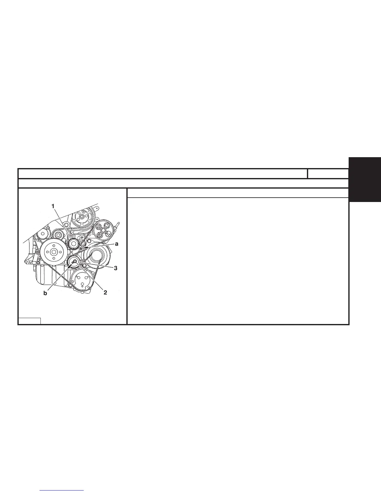 - Peg the dynamic tensioner (1) at "a", using tool [1].