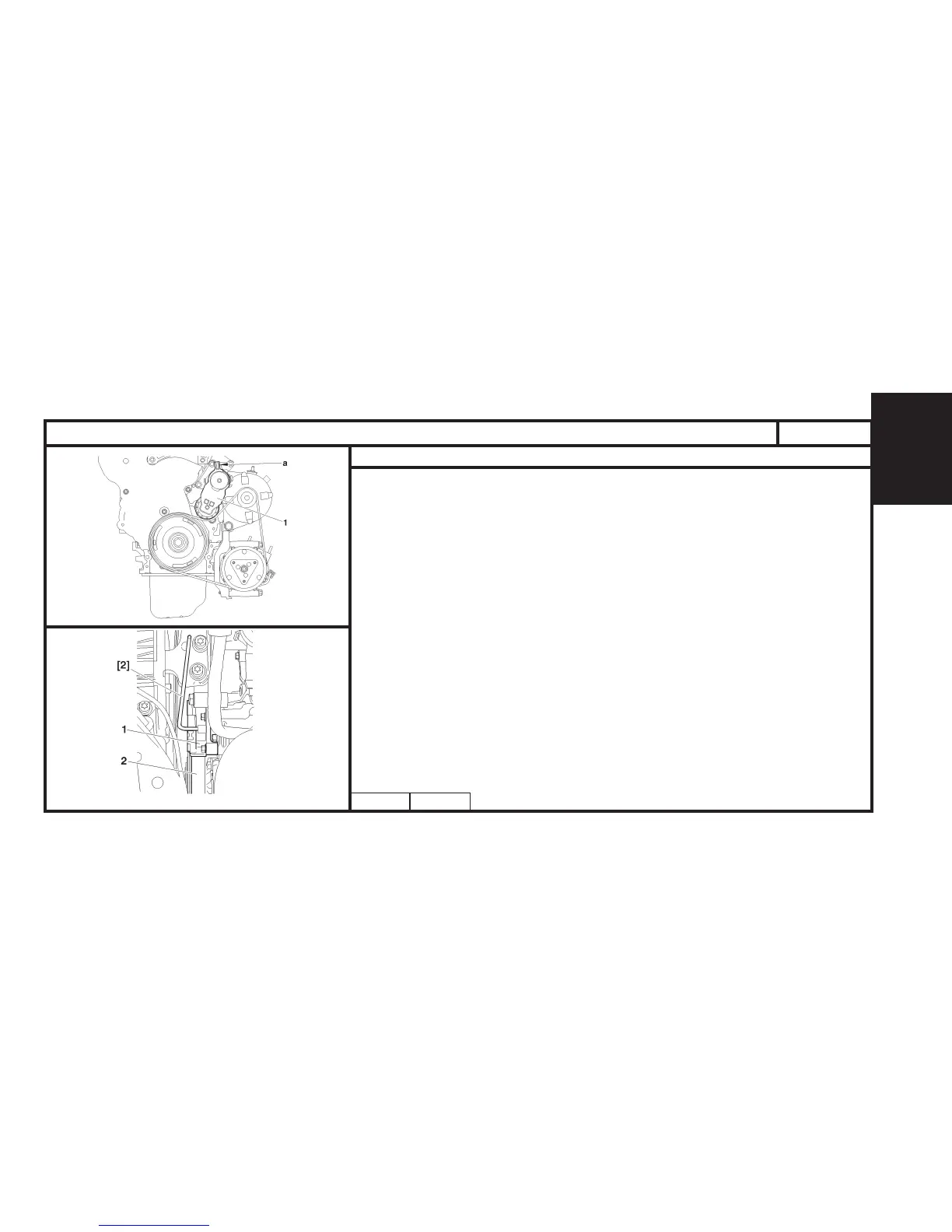 Pivot the tensioner roller support (1) (clockwise), using tools [1a] and [1b] at «a».
