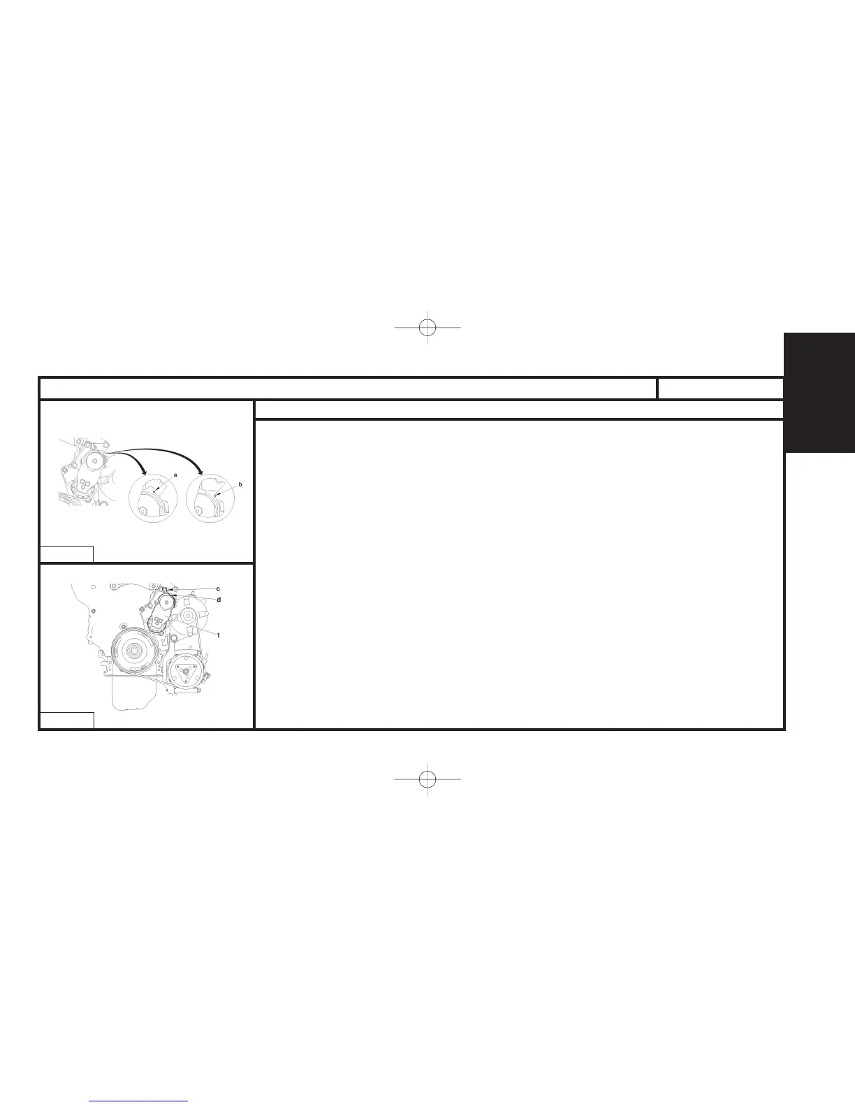 Compress the tensioner roller (1) by acting at «c»