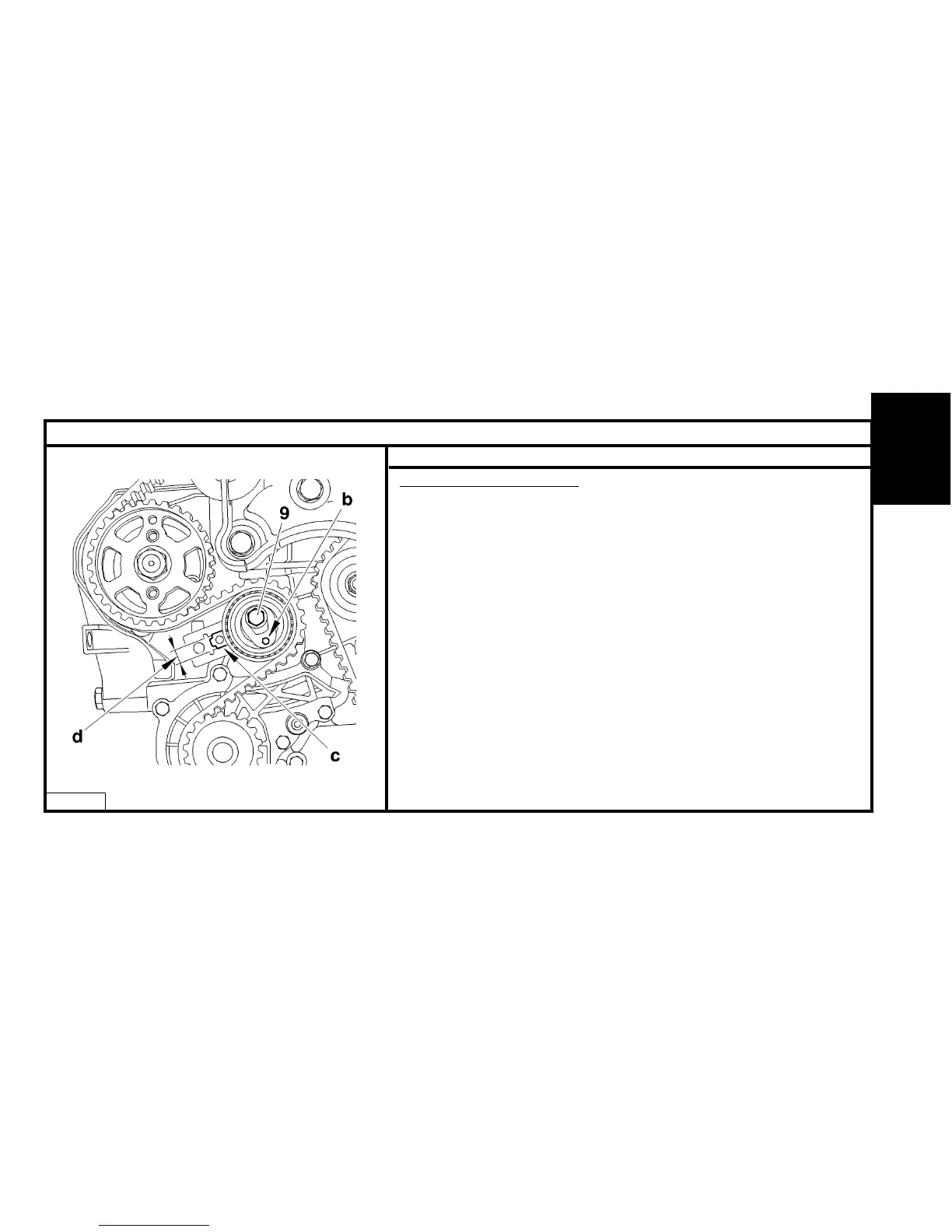 Turn the tensioner roller to the right to bring the index «c» to position «d», using a