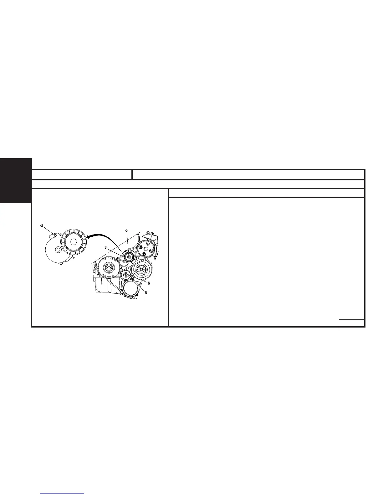 - Compress the tensioner roller (7) by moving it at « c » (in anti-clockwise direction),