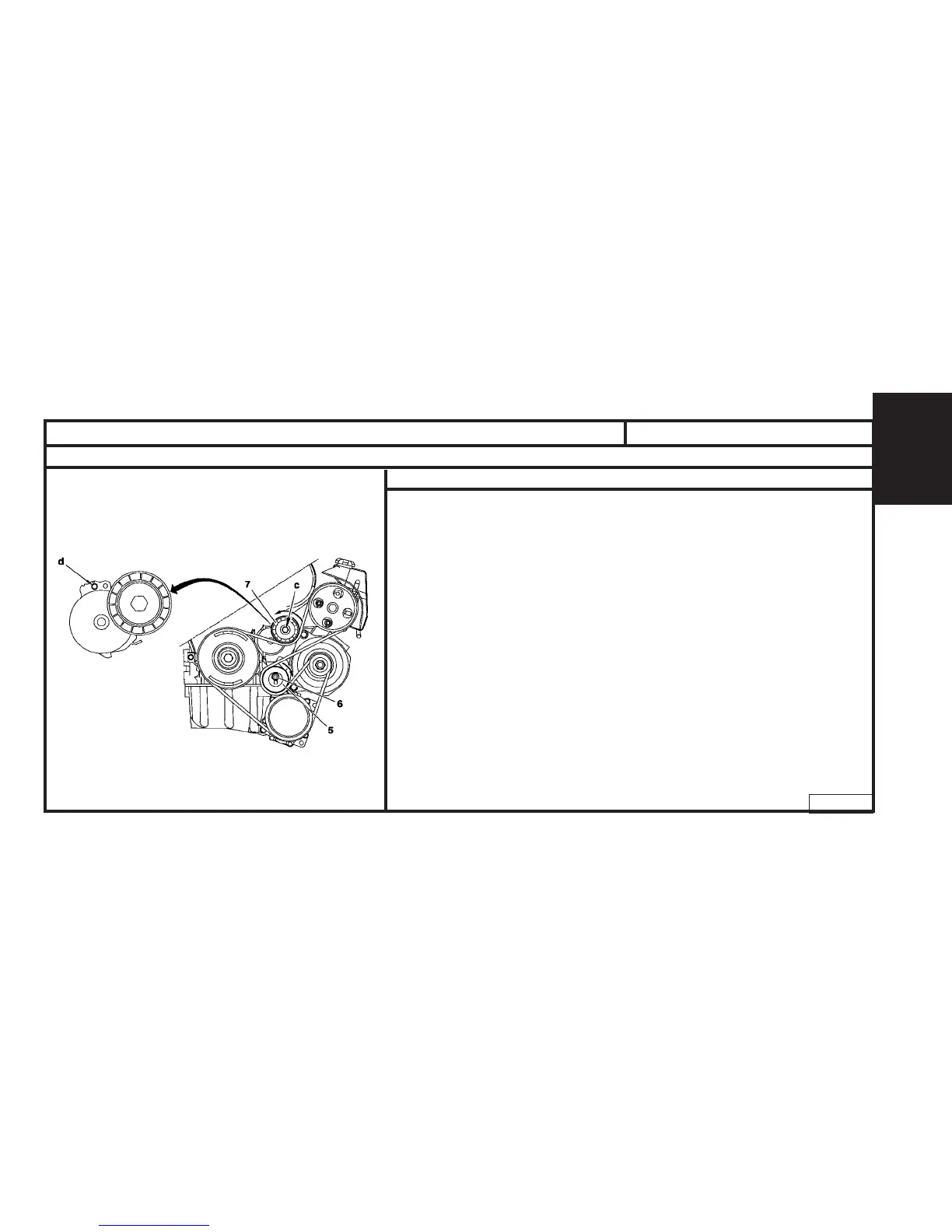- Compress the tensioner roller (7) by action at « c » (in anti-clockwise direction), tool [4].