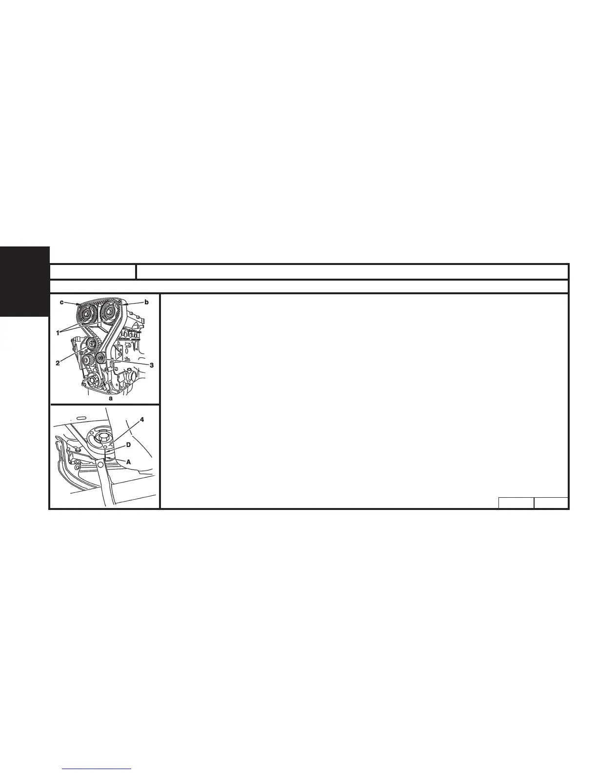- Line up mark (A) on the belt with groove (D) of the pinion (4).