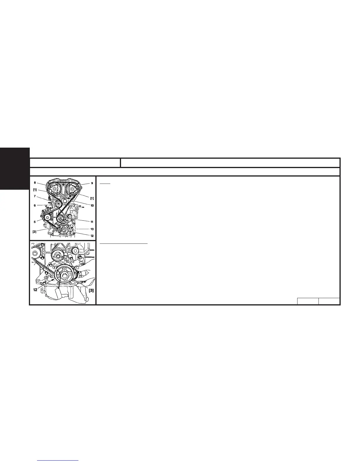 - The guide roller (11), the inlet camshaft pinion (9), the exhaust camshaft pinion (8), the water pump (5), the