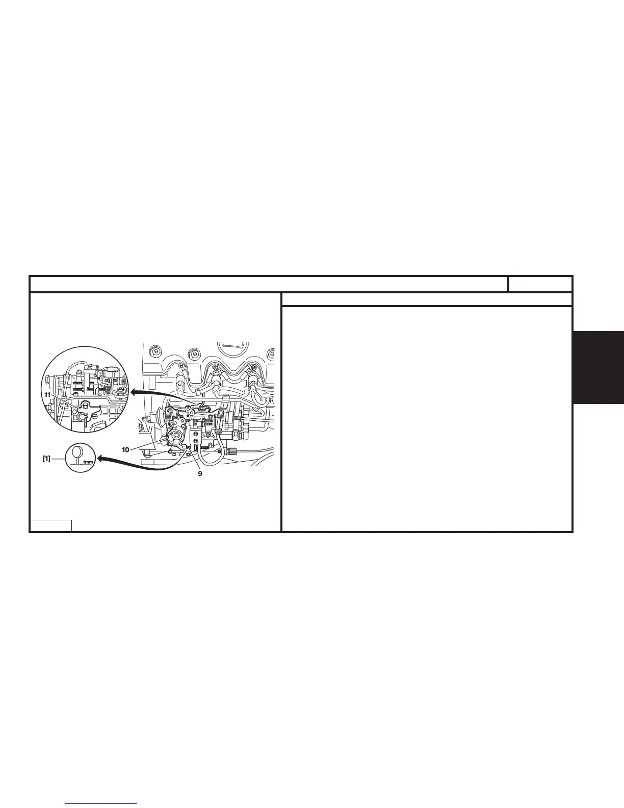 - Insert a 1 mm shim [1] between the throttle lever (10) and the residual