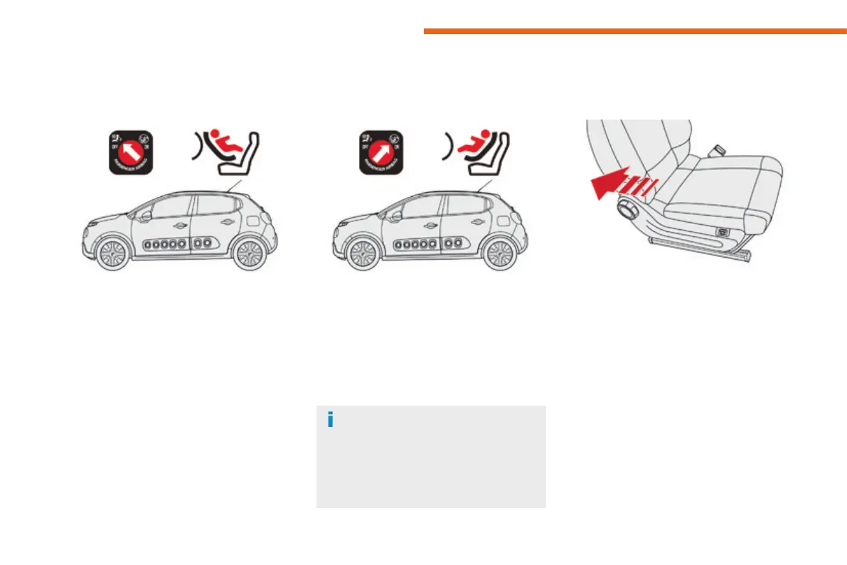 When a forward facing child seat is installed on