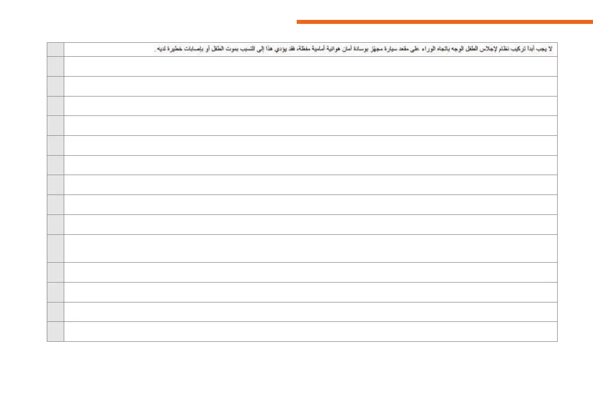 NEVER use a rearward facing child restraint on a seat protected by an ACTIVE AIRBAG in front of it, DEATH or SERIOUS INJURY to the