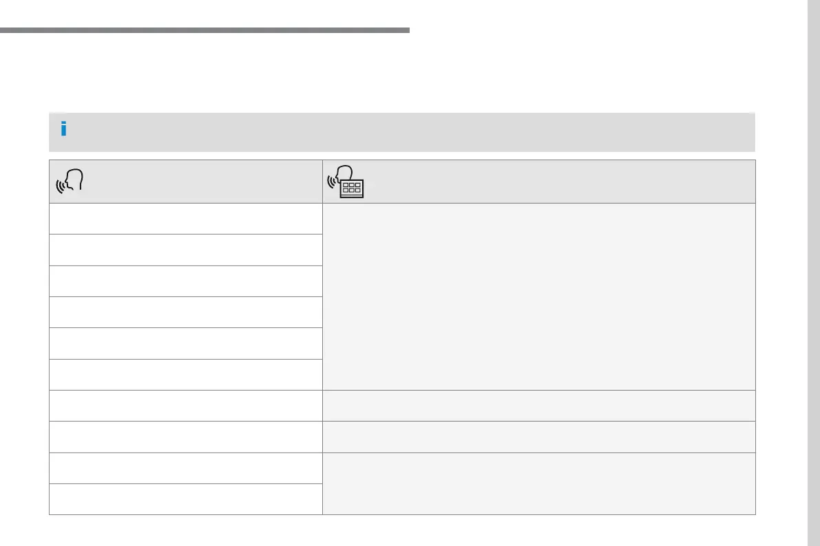 These commands can be made from any screen page after pressing the "Voice command" or "Telephone" button located on the steering