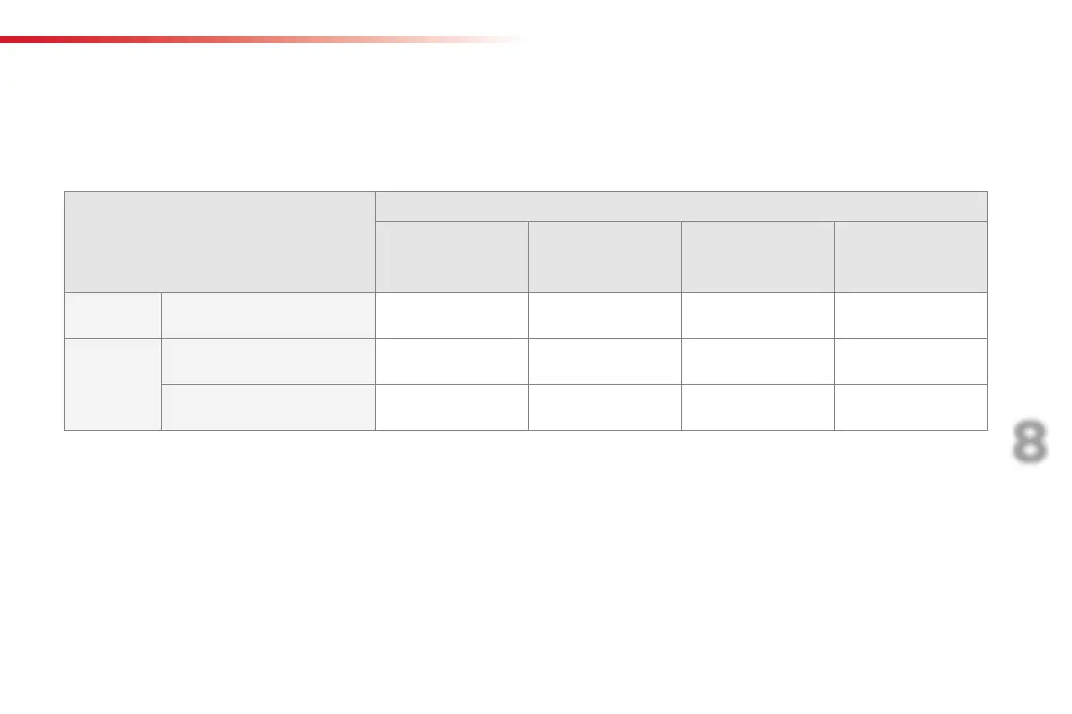 In accordance with European regulations, this table indicates the options for installing child seats secured using the seat belt and universally