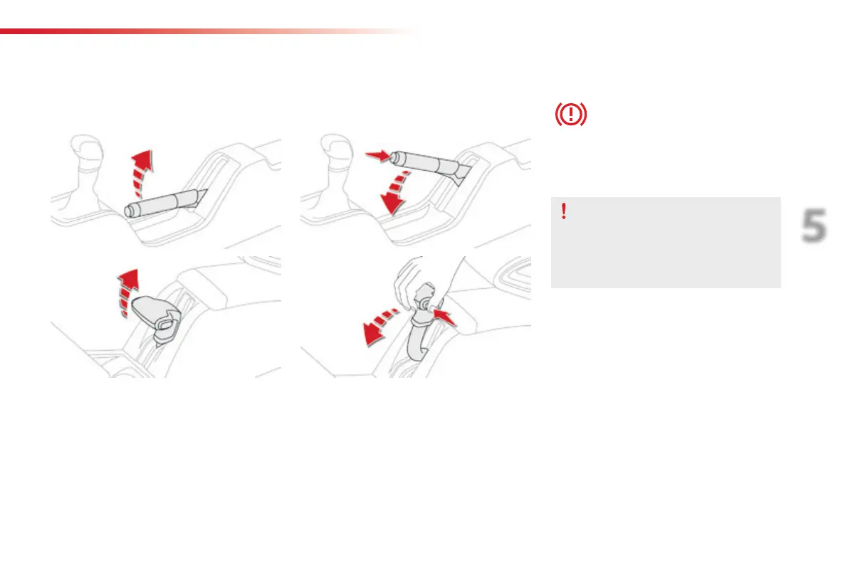 F Pull the parking brake lever up slightly,