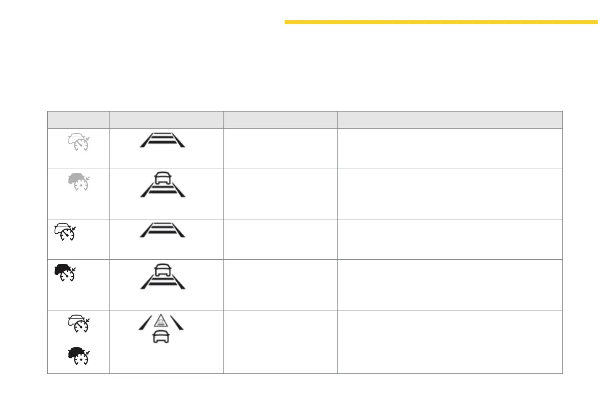 Thefollowingtabledescribesthealertsandthemessagesdisplayedforthedifferentdrivingsituations.