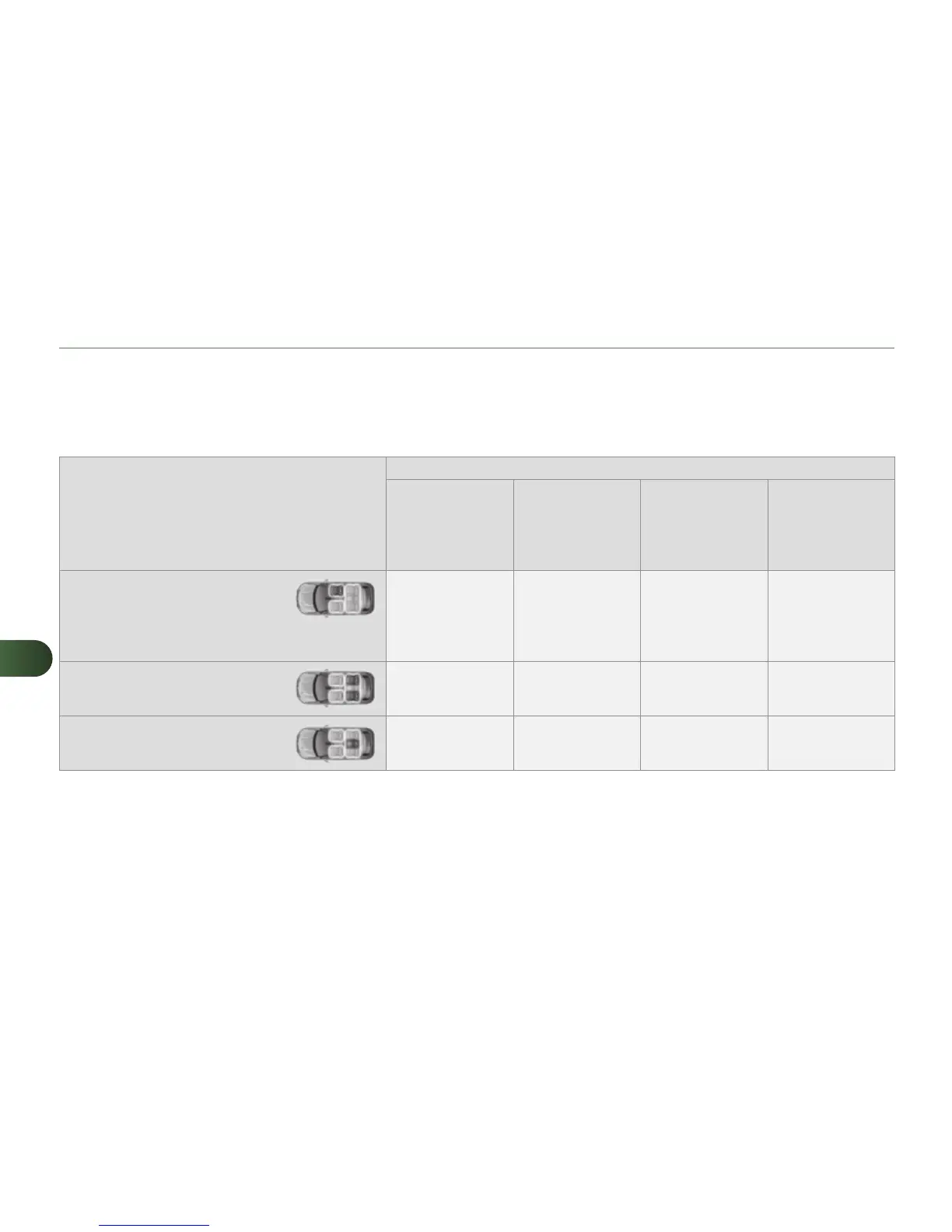 In accordance with European regulations, this table indicates the options for installing child seats secured using the seat belt