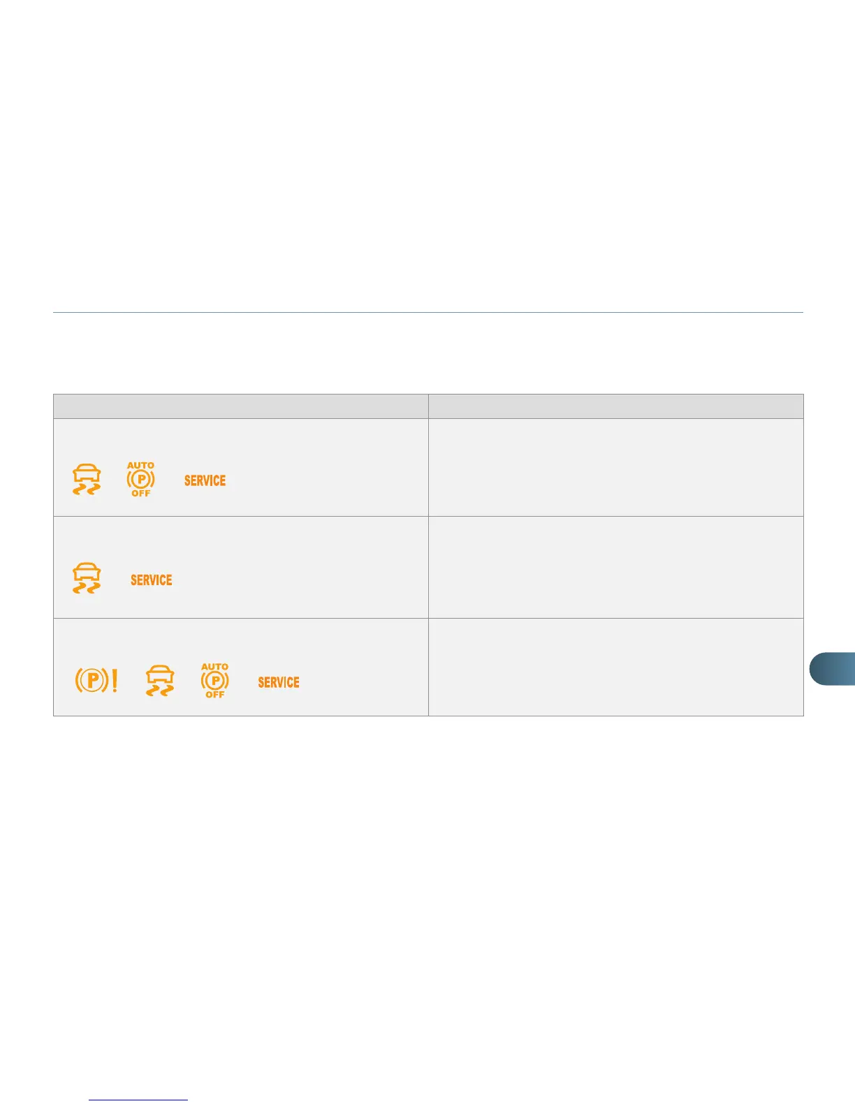 If the electric parking brake malfunction warning lamp comes on together with one or more of the warning lamps presented