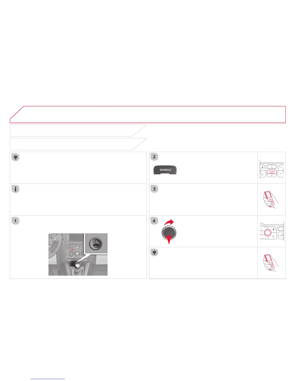 Do not connect a device to the USB port and to the auxiliary Jack