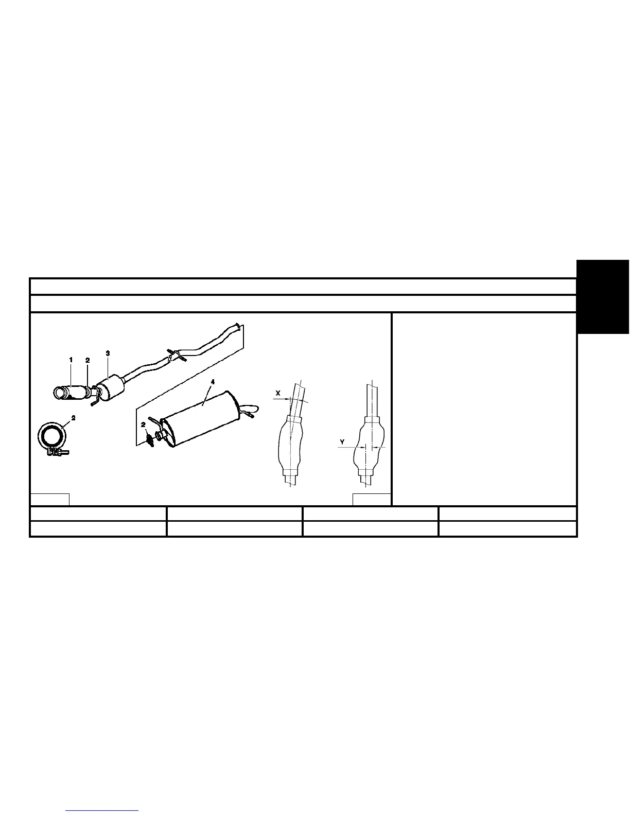 Engine Front flexible pipe (1) Catalytic converter (3) Rear silencer (4)