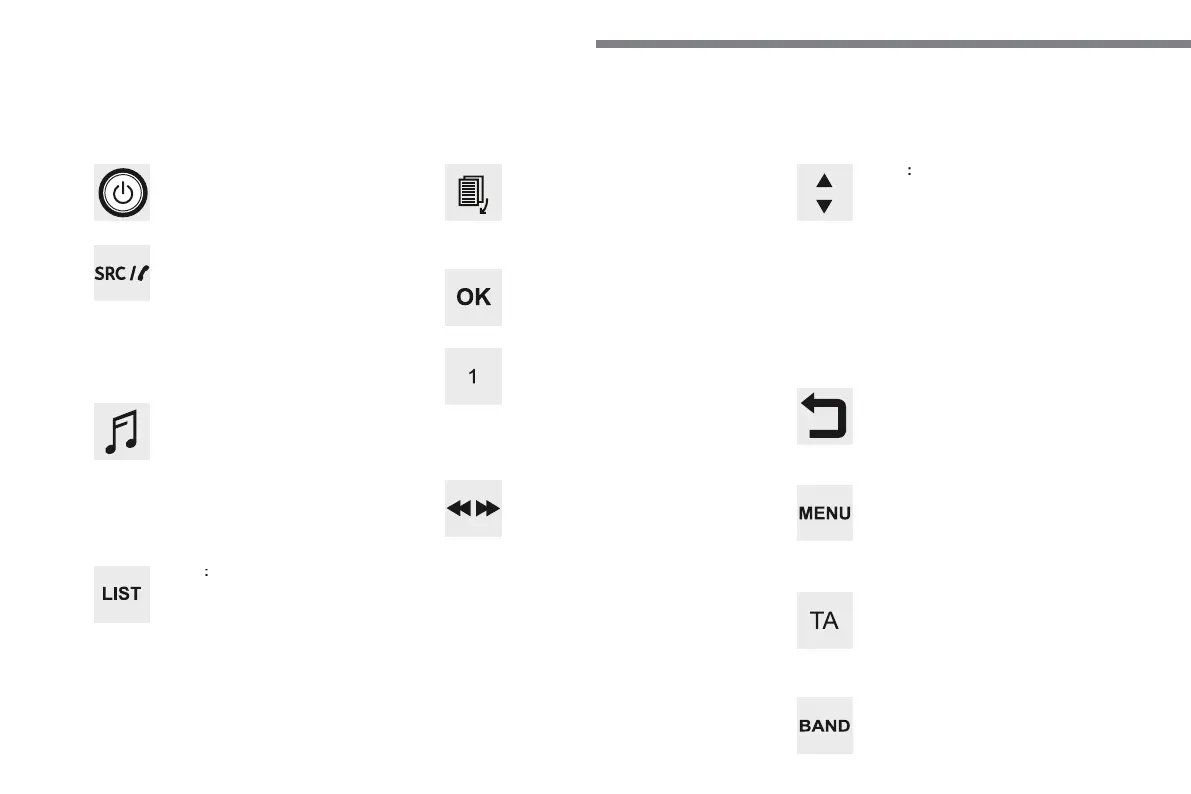 Short press: display the list of radio