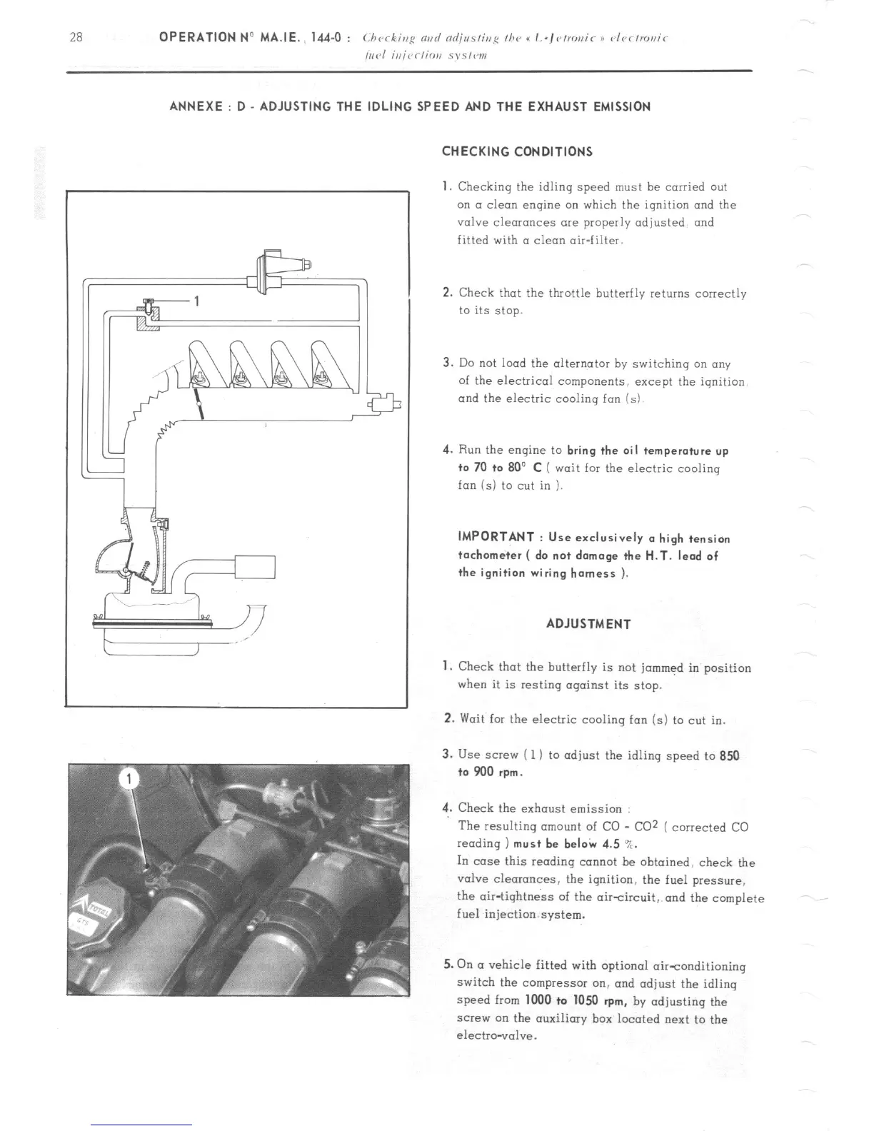 ANNEXE : D - ADJUSTING THE IDLING SPEED AND THE EXHAUST EMISSION
