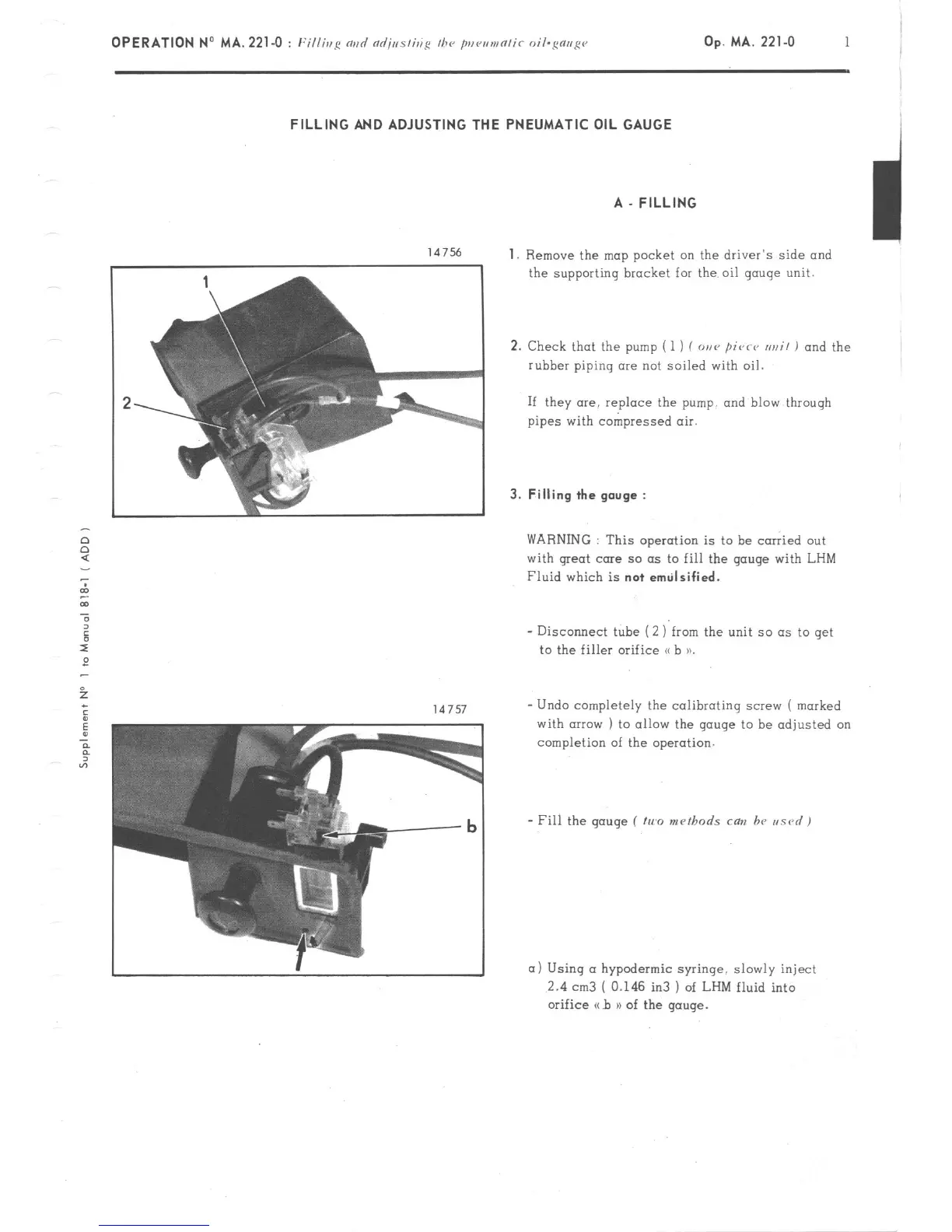 FILLING AND ADJUSTING THE PNEUMATIC OIL GAUGE