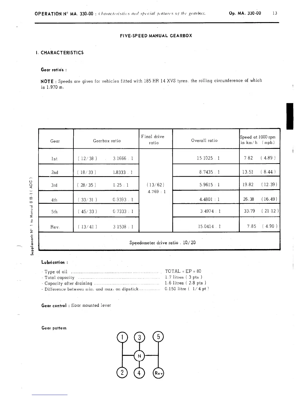 : Speeds are given for vehicles fitted with 185 HR 14 XVS tyres, the rolling circumference of which