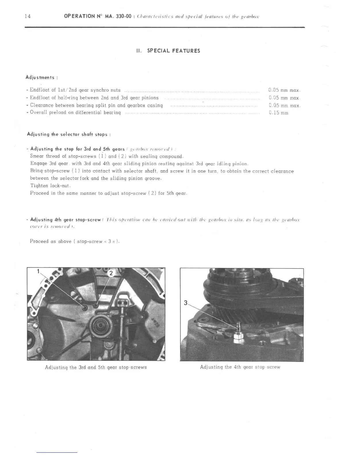 Bring,stop-screw ( 1) into contact with selector shaft, and scw.v it in one turn, to obtain the correct clearance