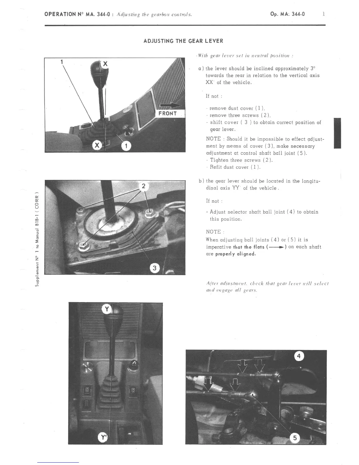 = Adjust selector shaft boll joint (4) to obtain