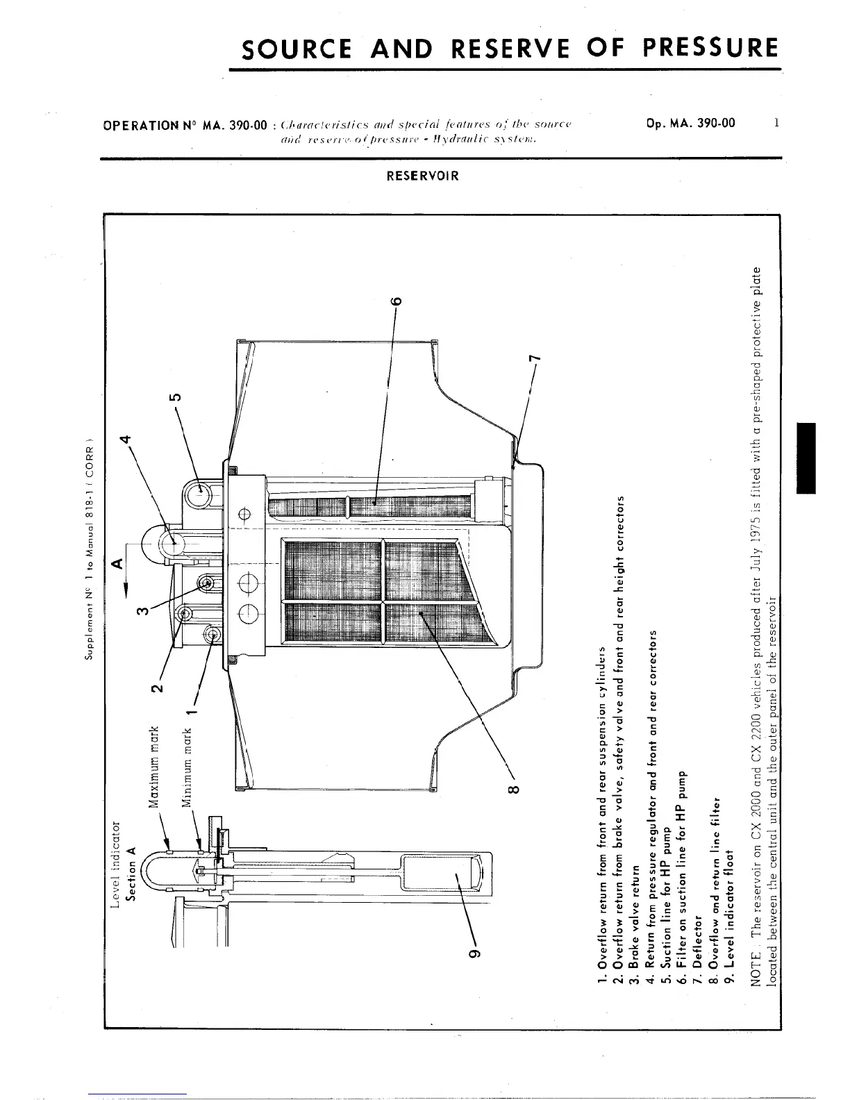 NOTE The reservoir on CX 2000 and CX 2200 vehicles produced after July 1375 is fitted with a pre-shaped protective plate