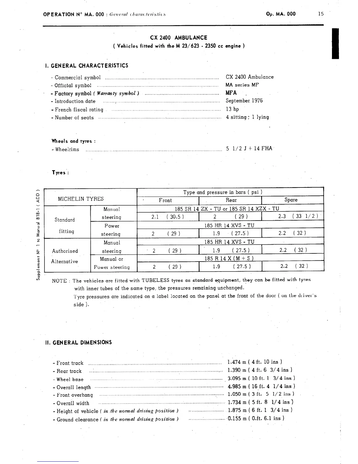 ( Vehicles fitted with the M 23/623 - 2350 cc engine )