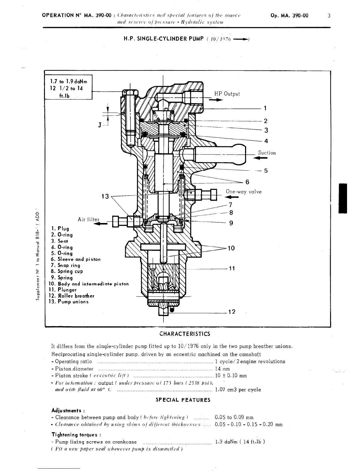 It differs from the single-cylinder pump fitted up to lO/ 1976