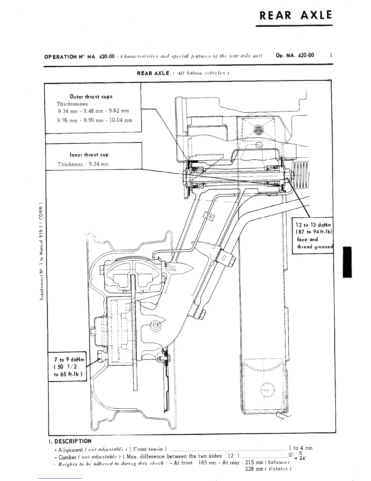 Alignment ( trot nr/juslabl;J ) (. Front toe-in ) ._....,.,.,....,,._........._._._....._..._........ ..,............__._... 1 to 04 mm
