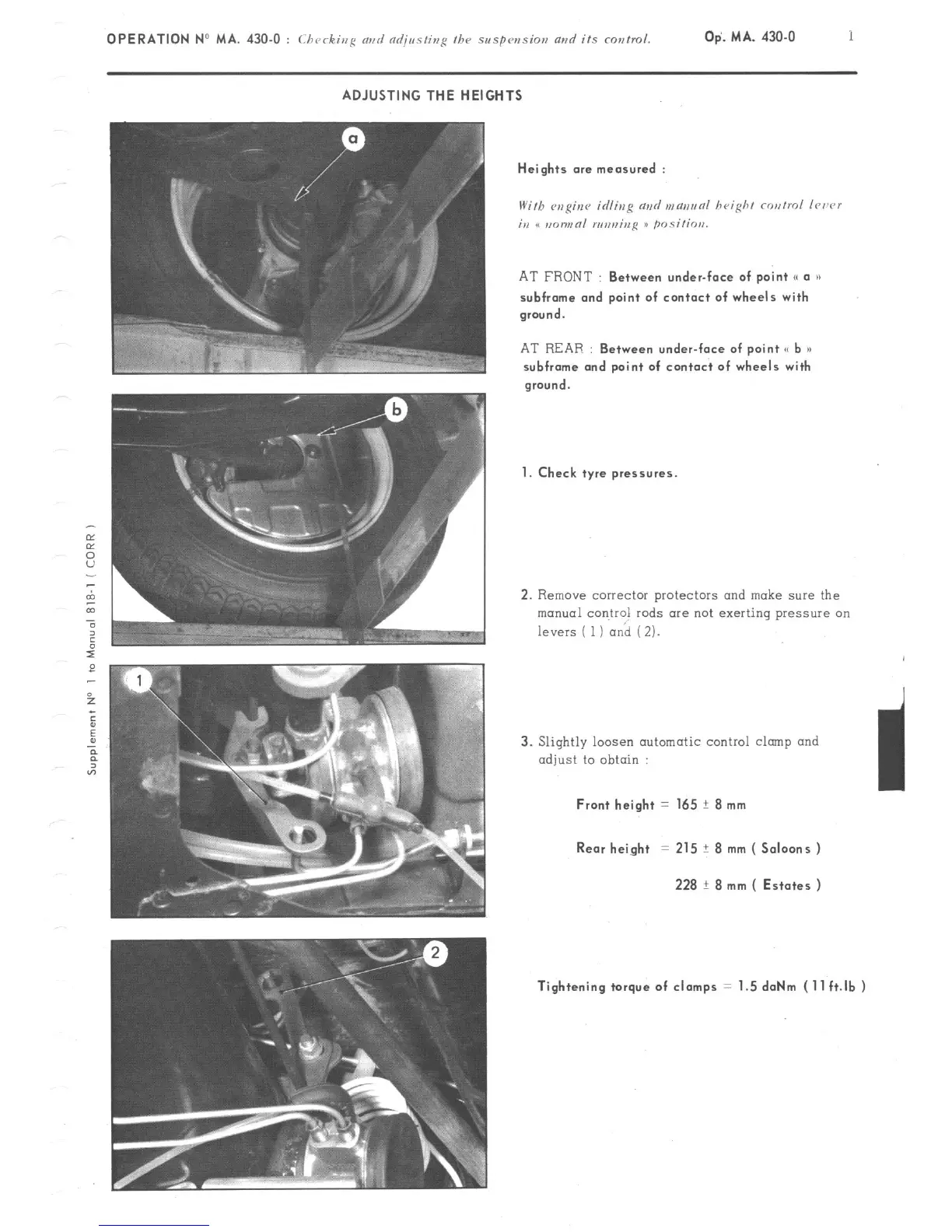 OPERATION No MA. 430-O : Checking md ndjusting the suspcusion and its control.