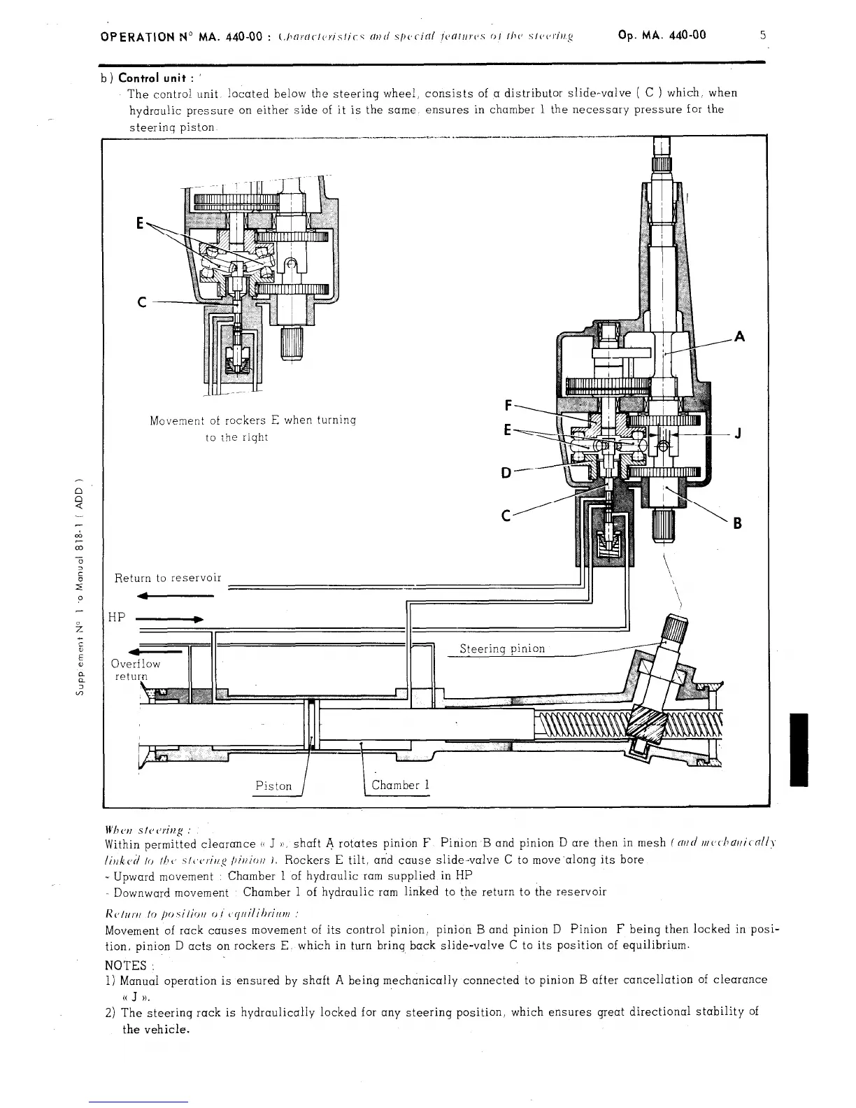 The contra! unit located below the steering wheel, consists of a distributor slide-valve ( C ) which. when