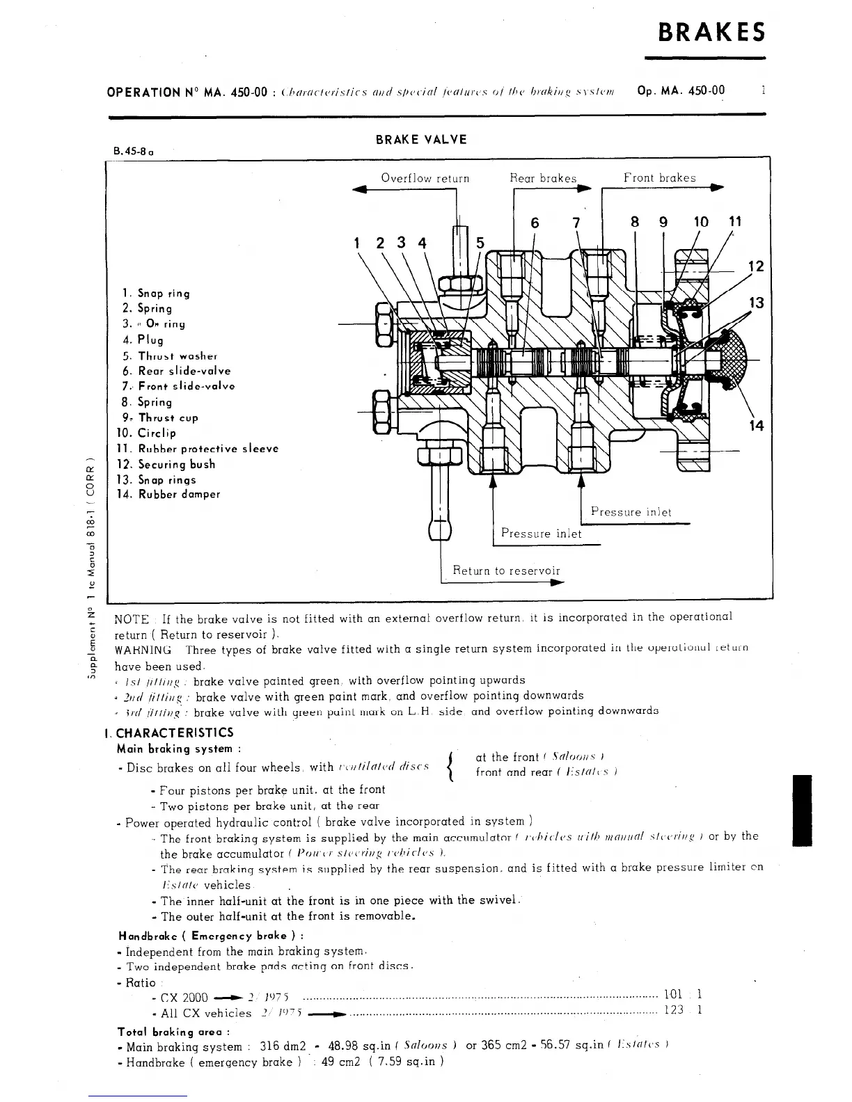 WARNING Three types of brake valve fitted with a single return system incorporated in the operational return