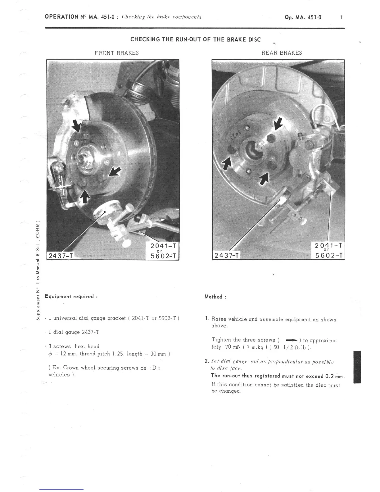 CHECKING THE RUN-OUT OF THE BRAKE DISC -