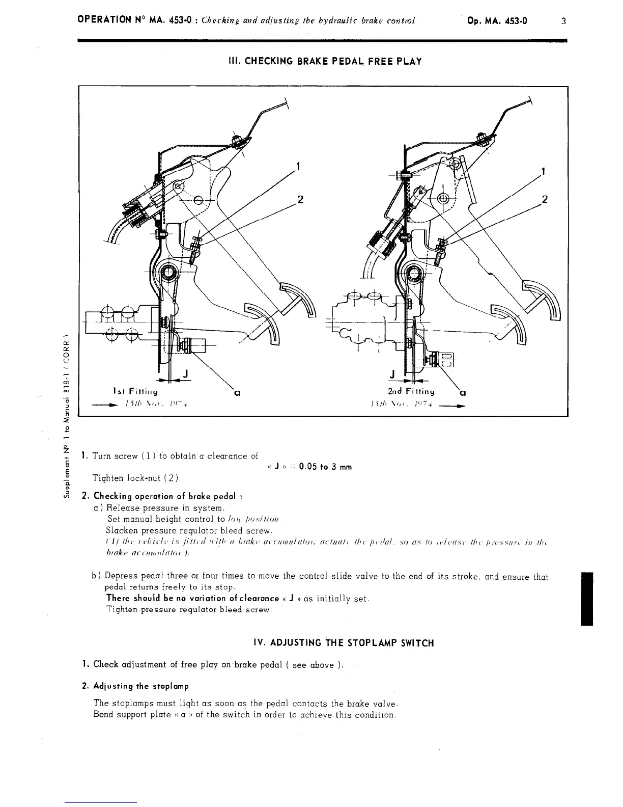 III. CHECKING BRAKE PEDAL FREE PLAY